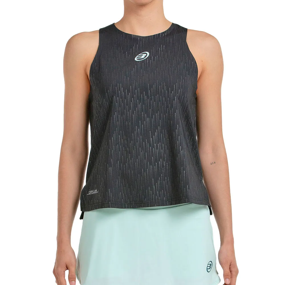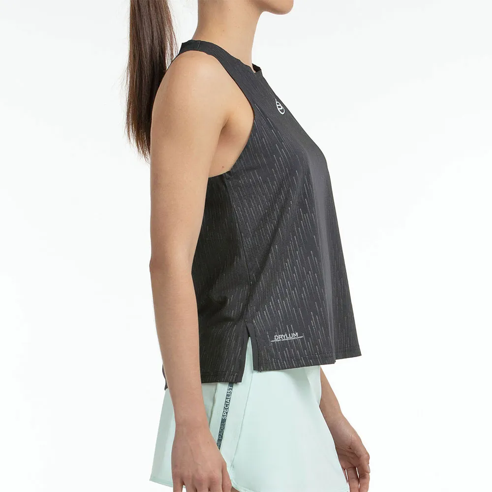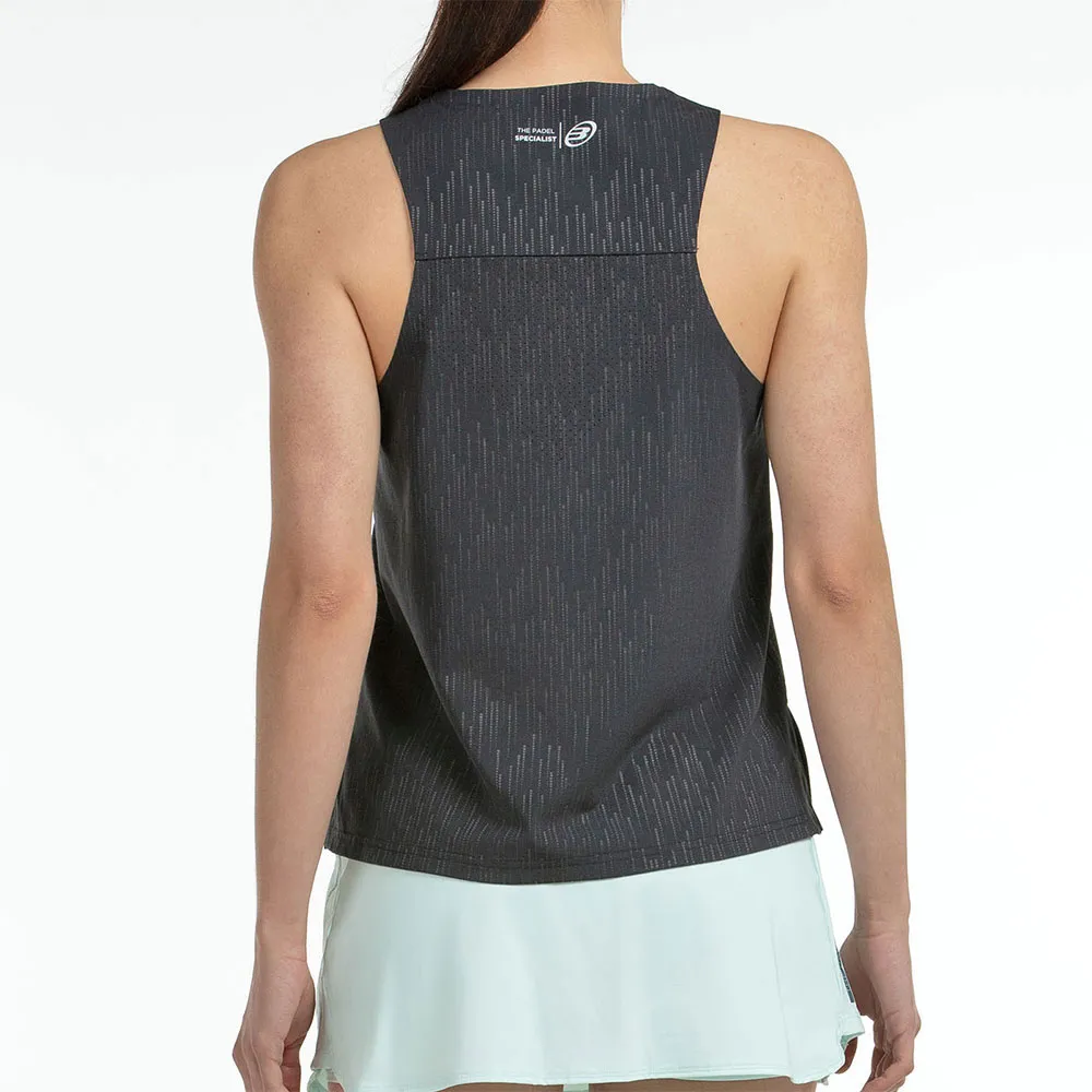 Camiseta Bullpadel Abure negro sin tirantes con cuello a la caja, silueta amplia.
