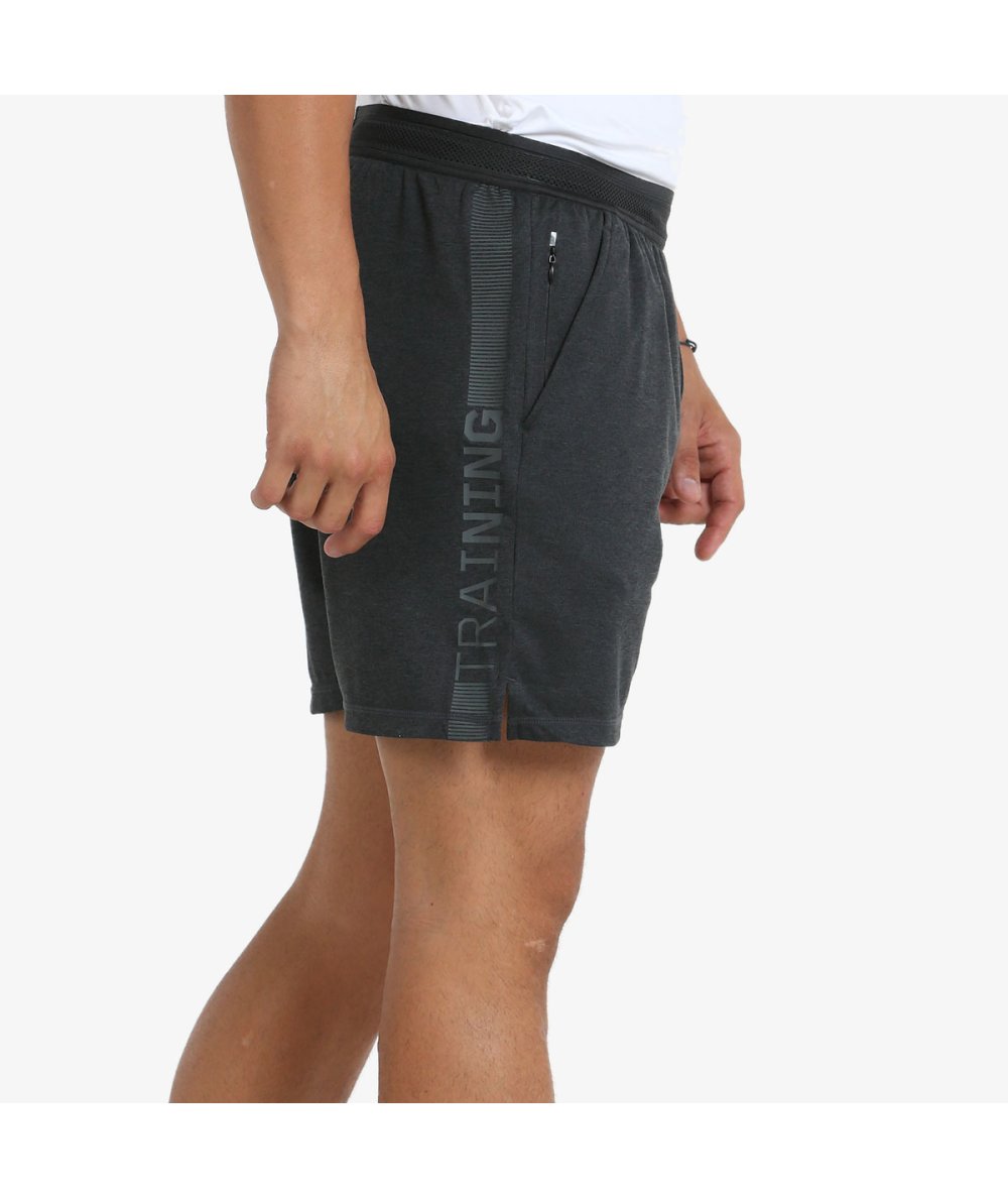 Bermuda con braguero fabricada en Interlock y acabado de secado rápido, con efecto rejilla y gráficos tono sobre tono en los laterales. Cuenta con bolsillos laterales y el logotipo reflectante en la parte frontal.
